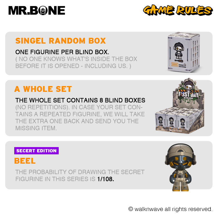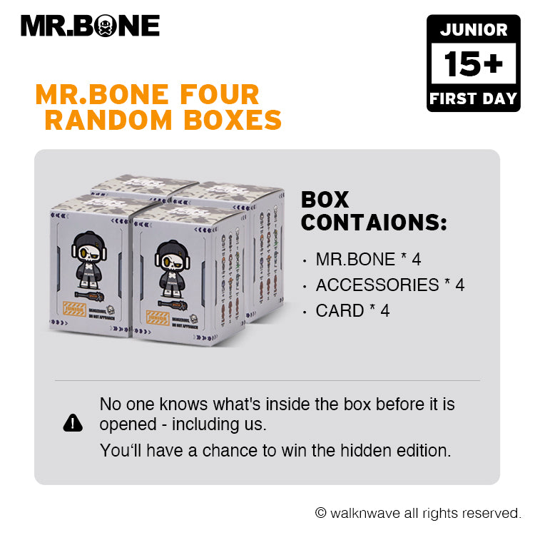 · Box contains: Mr.Bone * 4, accessories * 4, Cards * 4