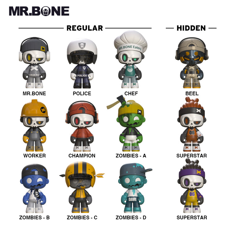 Mr.Bone the camping series includes 9 regular models and 3 hidden models. If you buy one randomly, you have a chance of winning the hidden model.