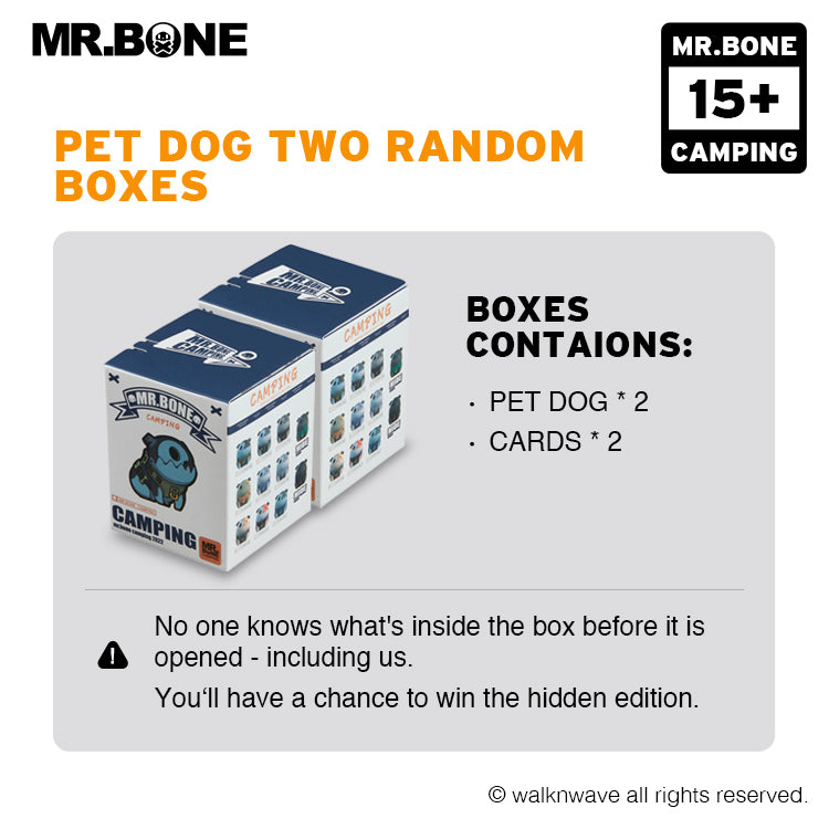Mr.Bone the camping series Pet dog includes 9 regular models and 2 hidden models. If you buy one randomly, you have a chance of winning the hidden model.