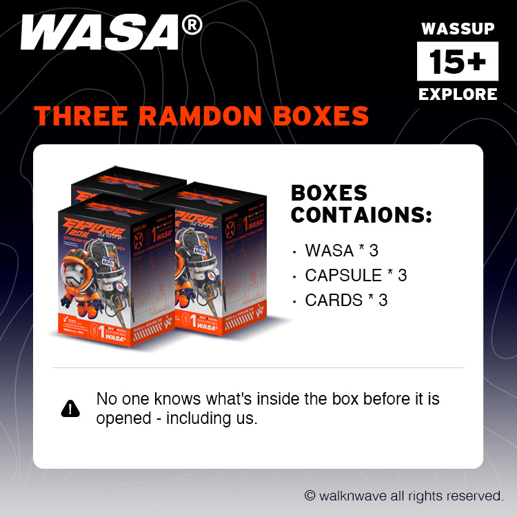 · Box contains: WASA Doll * 3, Spaceship * 3, Cards * 3