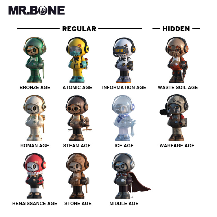 Mr.Bone the camping series includes 9 regular models and 2 hidden models. If you buy one randomly, you have a chance of winning the hidden model.